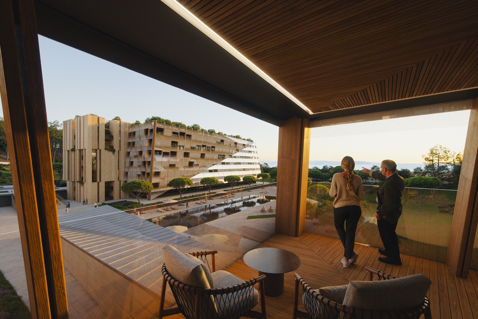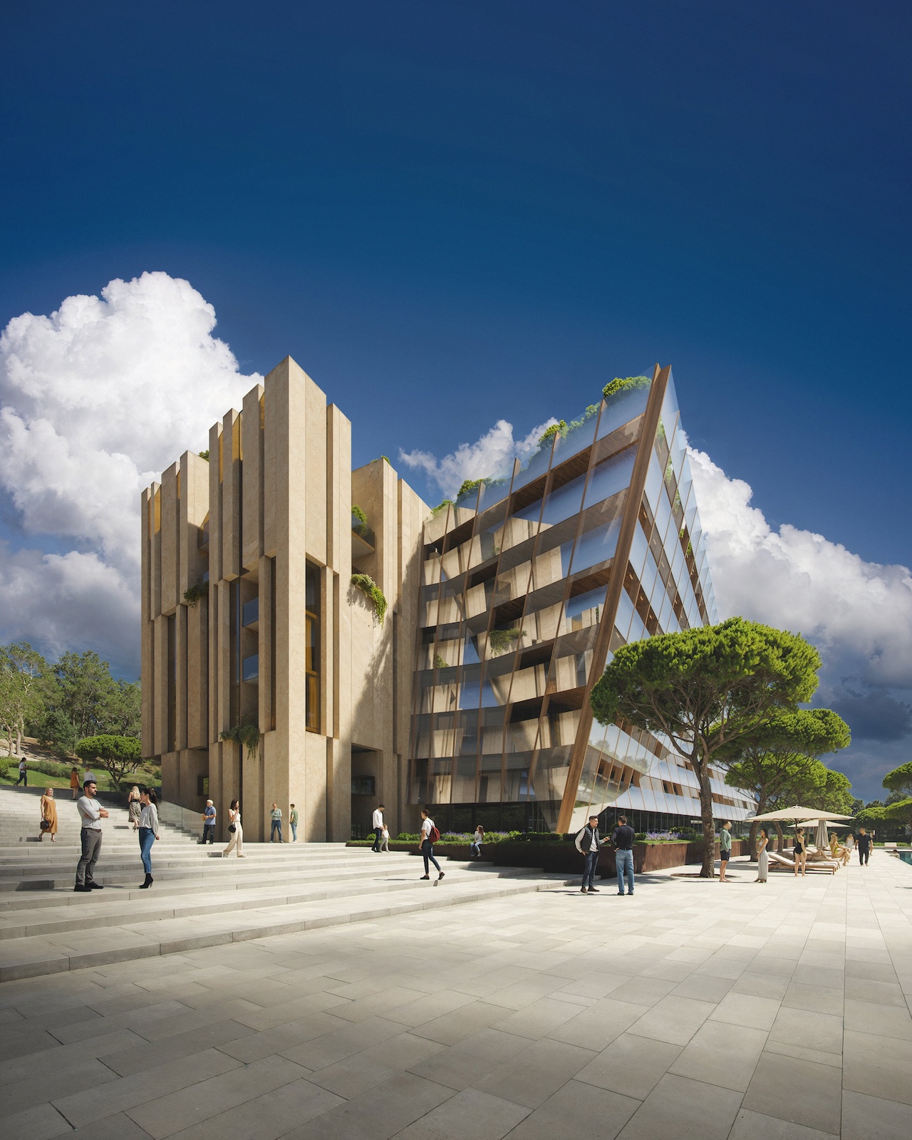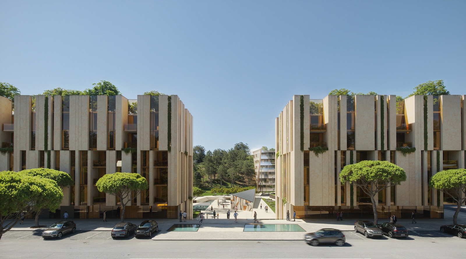 This project is a collaboration with S+A. In the design phase, we incorporated a conceptual duality — public and private — closely tied to the site’s context. The design centers around a building visible along the north-south axis. This structure is inspired by the solidity of stone cliffs — natural formations that, despite their fissures, convey a sense of permanence and privacy.