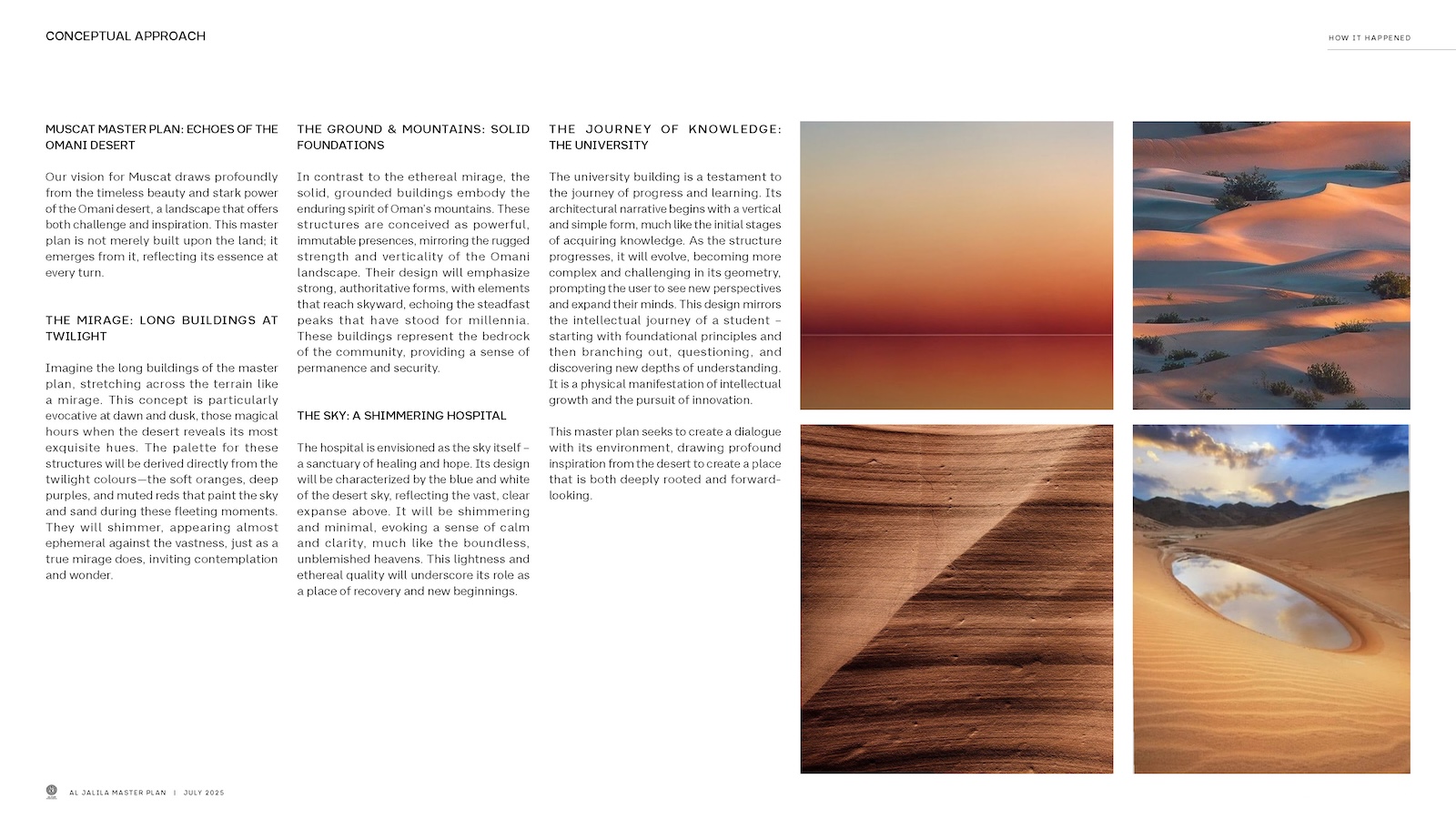 Rooted in its environment yet forward-looking, the master plan seeks to create a dialogue between land, light, and human experience. It is both a reflection of the desert’s resilience and a vision for the future—where architecture, landscape, and meaning converge to form a place that feels deeply connected, serene, and timeless.